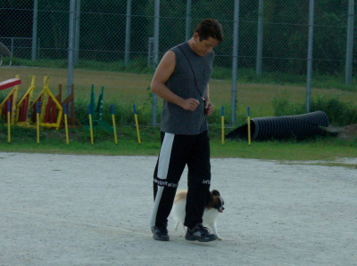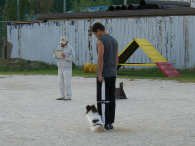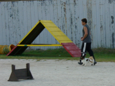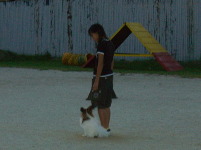 1.紐付脚側行進(往路は常歩・復路は速歩)