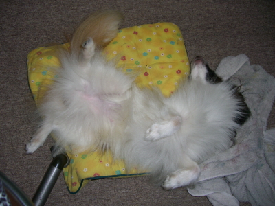 帰ってきたらこ〜んな格好で寝ておりました。