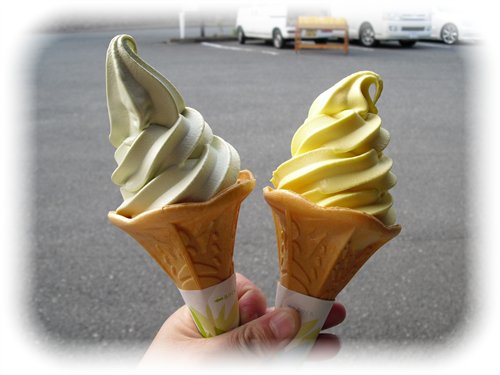 左・・・わさびソフト 右・・・柚子はちみつソフト