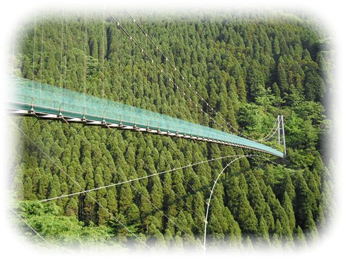 自然たっぷりの森の中を進んでいくと・・・大吊橋が。