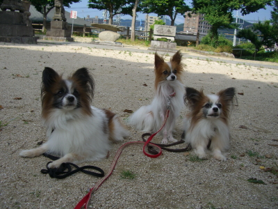 遊んだ後は近くの神社で服従の練習。