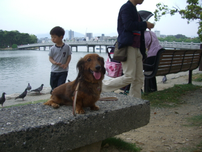 とりあえず行ってみようとボートハウスに近づくと見慣れたMダックスちゃん発見!