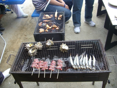 サザエに肉に魚に・・・焼き鳥も。