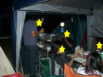 8時ごろ現地着。テントとタープを張って宴会 キャンプ開始〜(* ̄∇ ̄*)