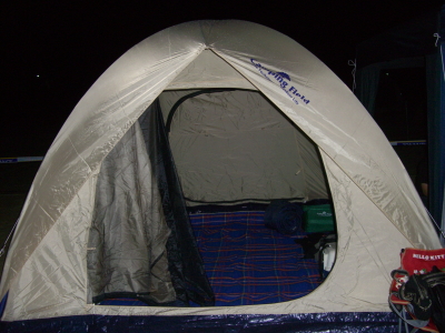 8時ごろ現地着。テントとタープを張って